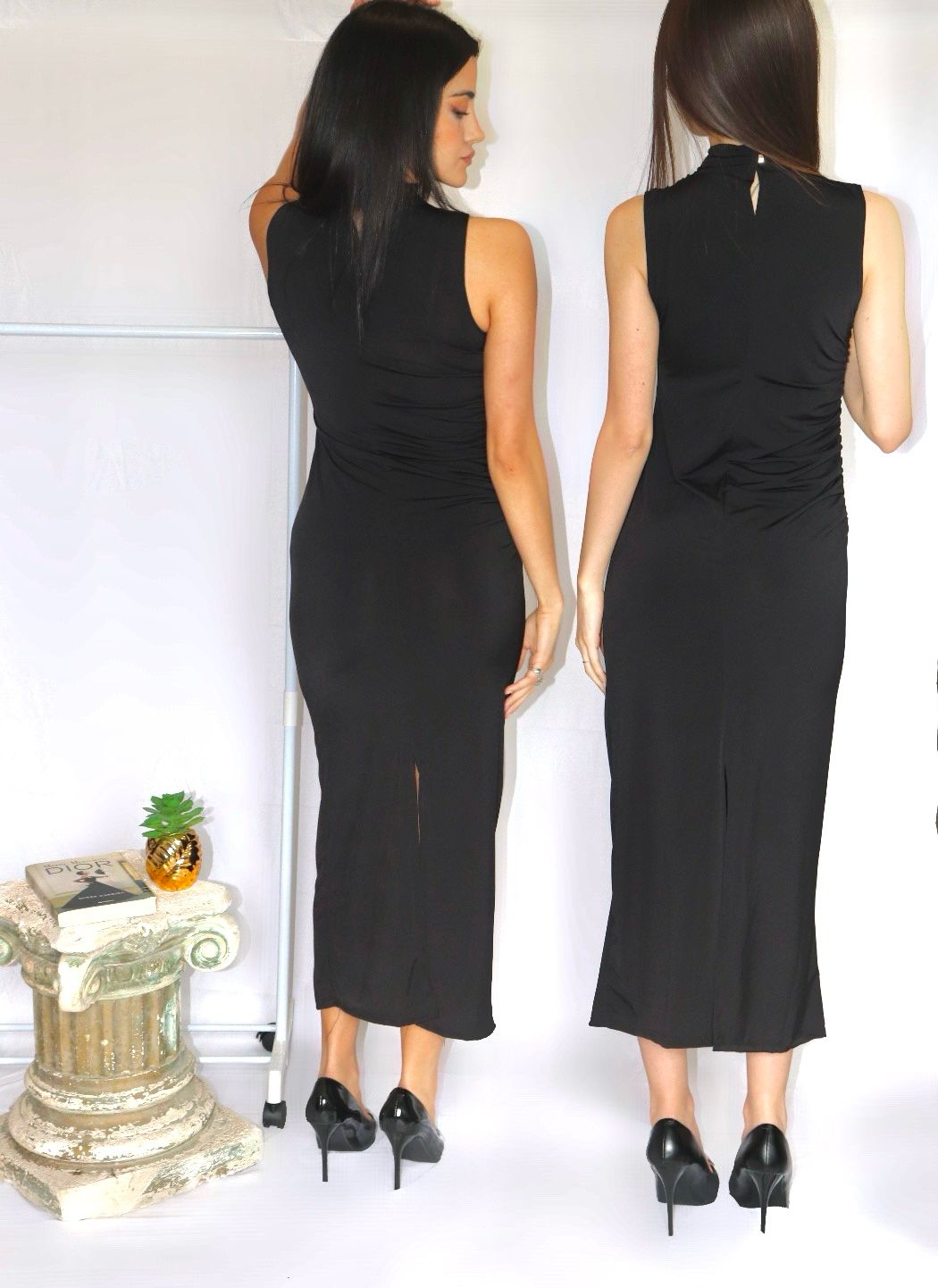 abito lungo a fascia, drappeggio lungo i fianchi, spacco dietro. TG. UNICA da XS ad L.📌 Nota importante: Ogni abito che vedete indossato durante i nostri shooting viene adattato e modificato su misura per la modella che lo indossa. 💡