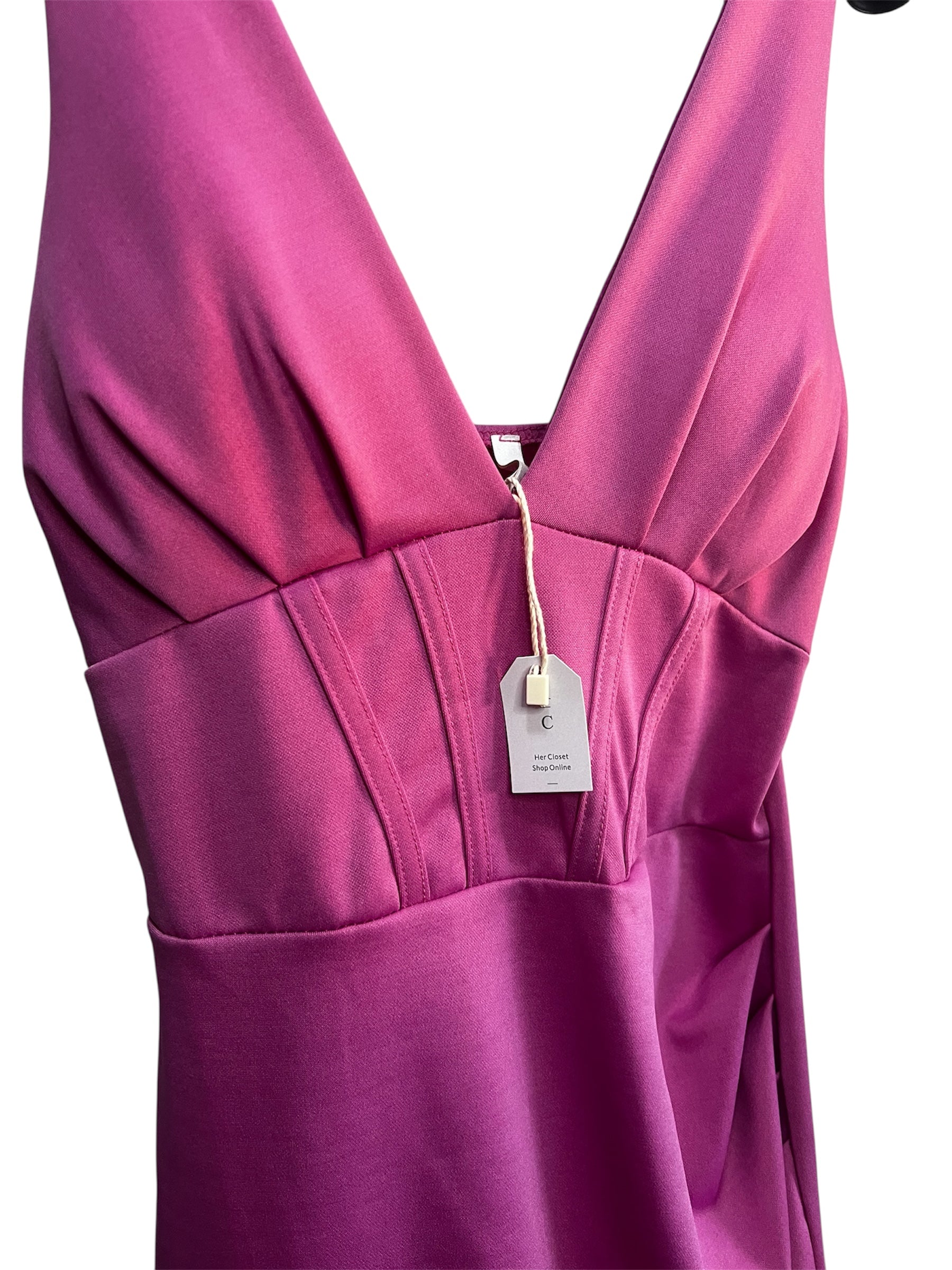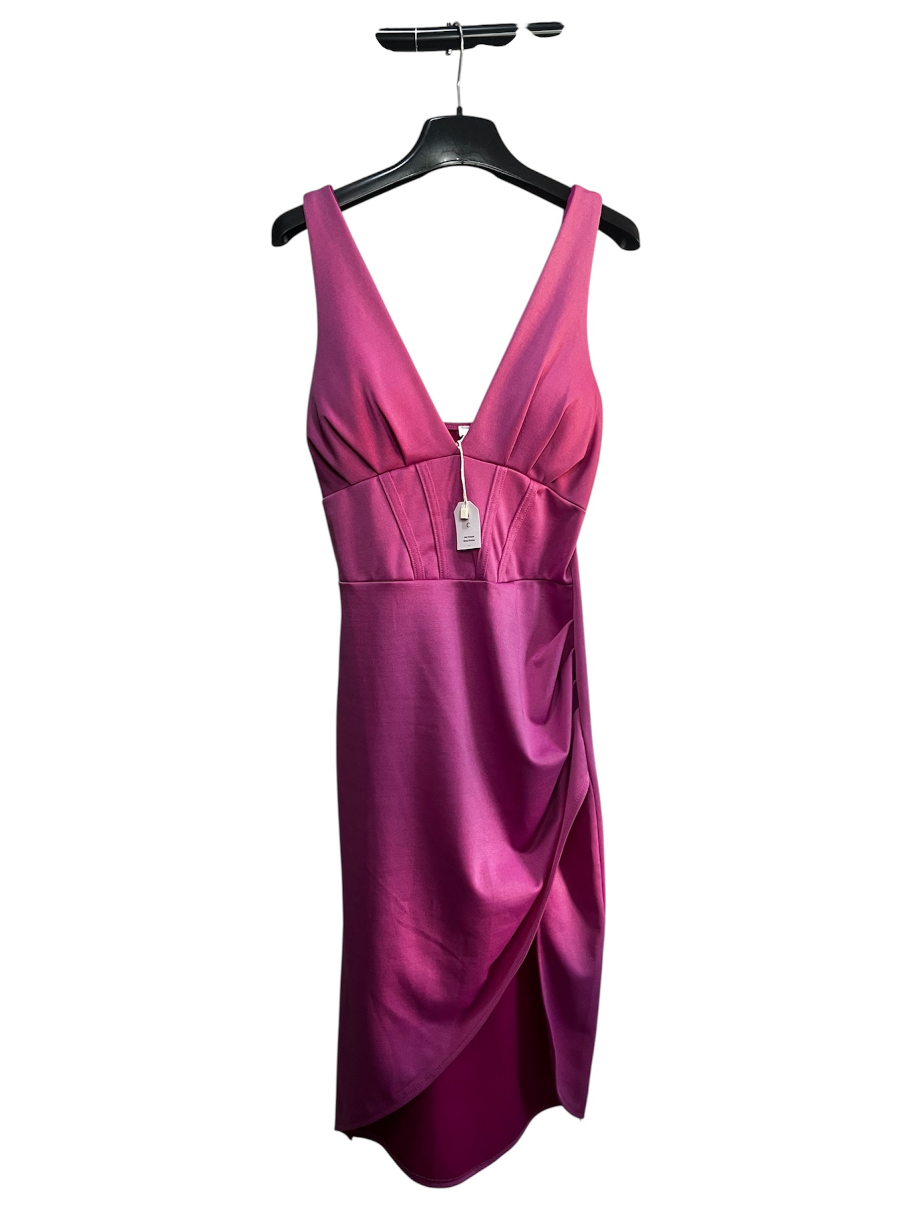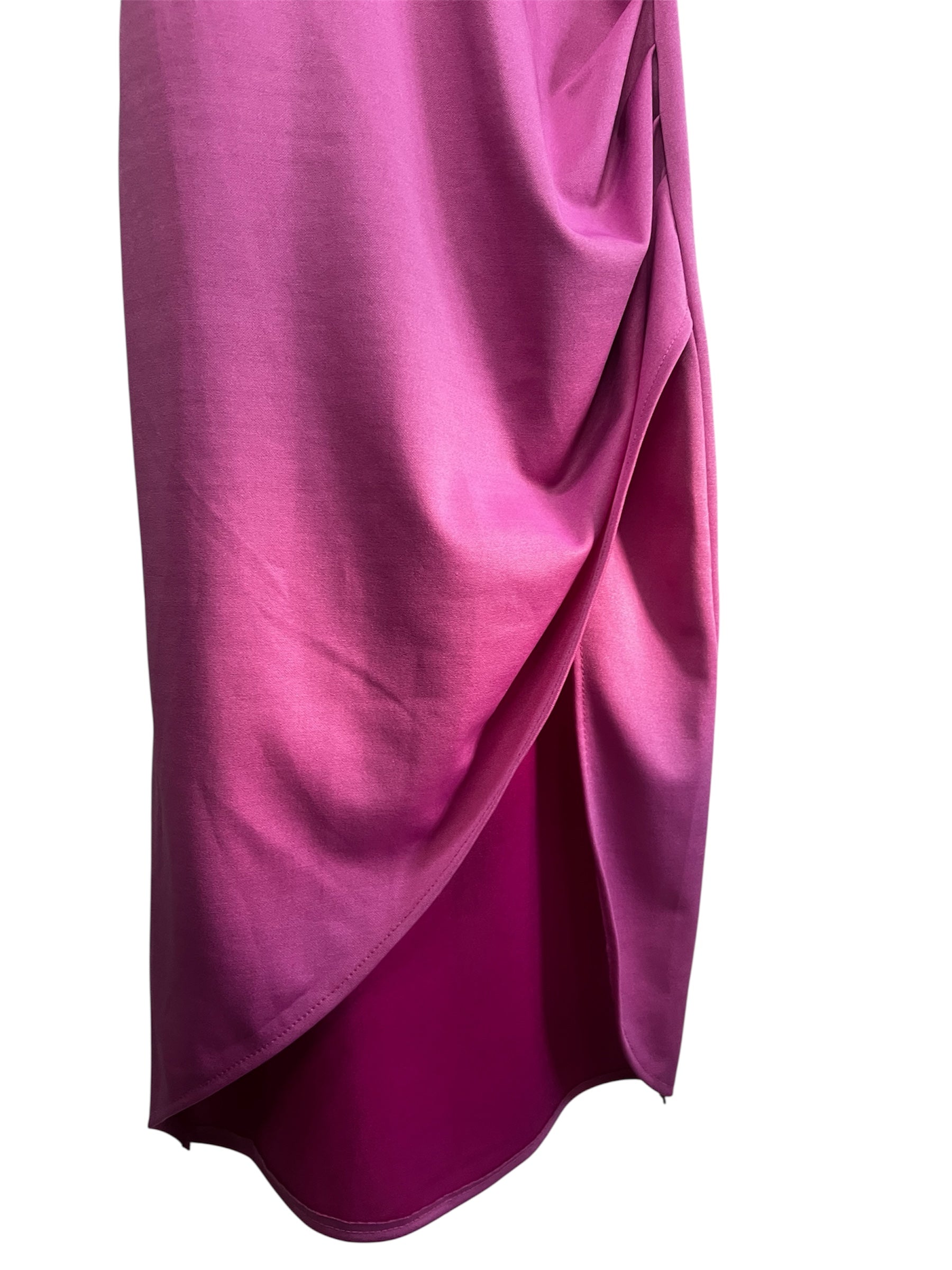 Abito asimmetrico, con coppe e scollo a portafoglio.