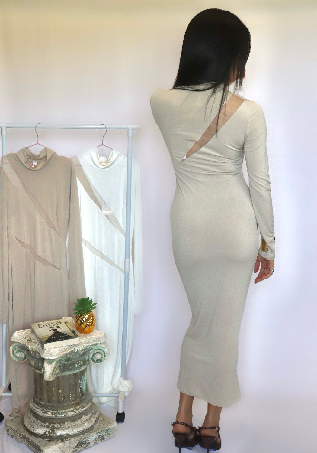abito con tagli cot-out velati. TG.UNICA da XS a L.📌 Nota importante: Ogni abito che vedete indossato durante i nostri shooting viene adattato e modificato su misura per la modella che lo indossa. 💡