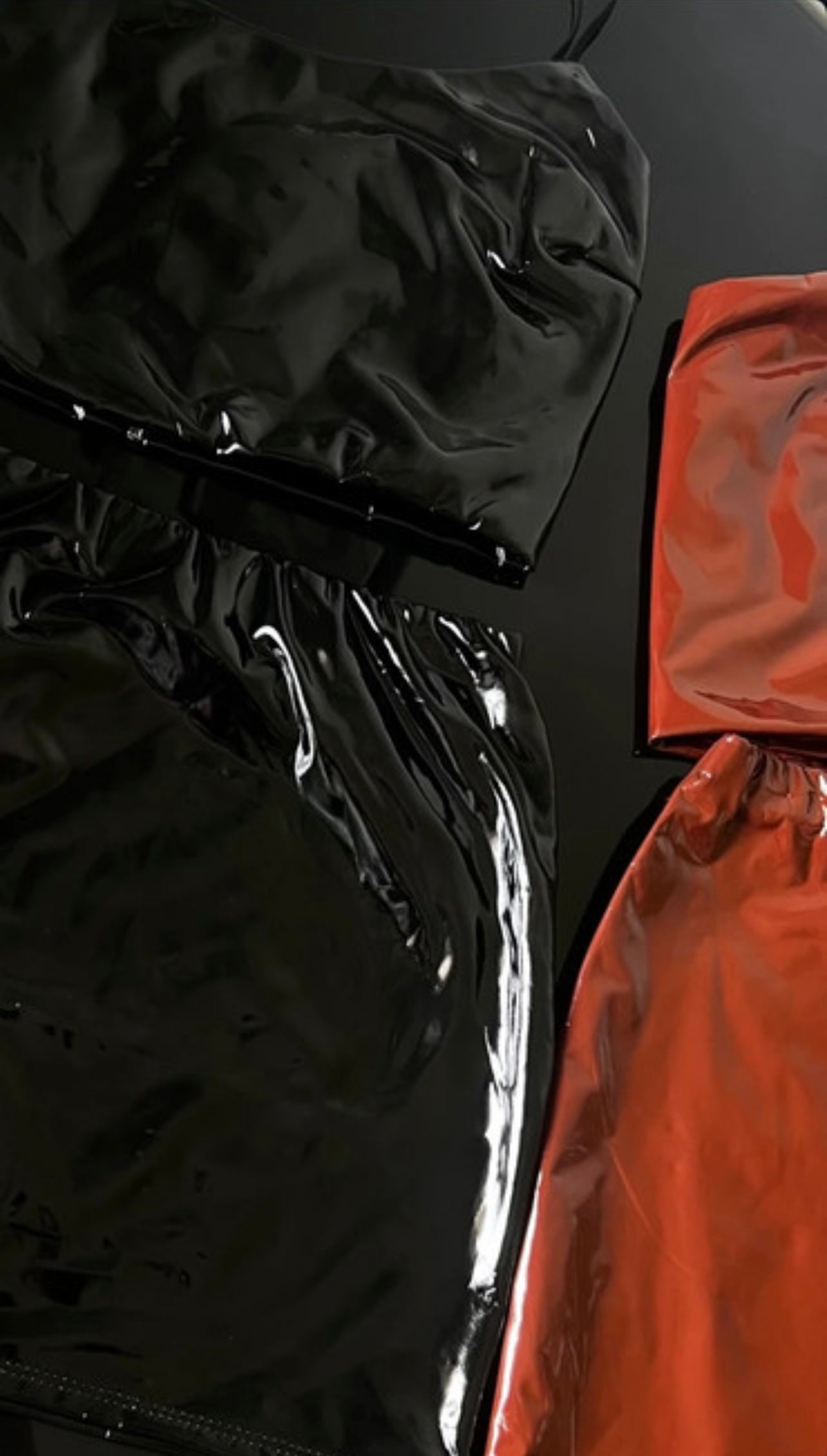 Completo due pezzi in latex felpati dentro, TG. UNICA con vestibilità da XS ad M.