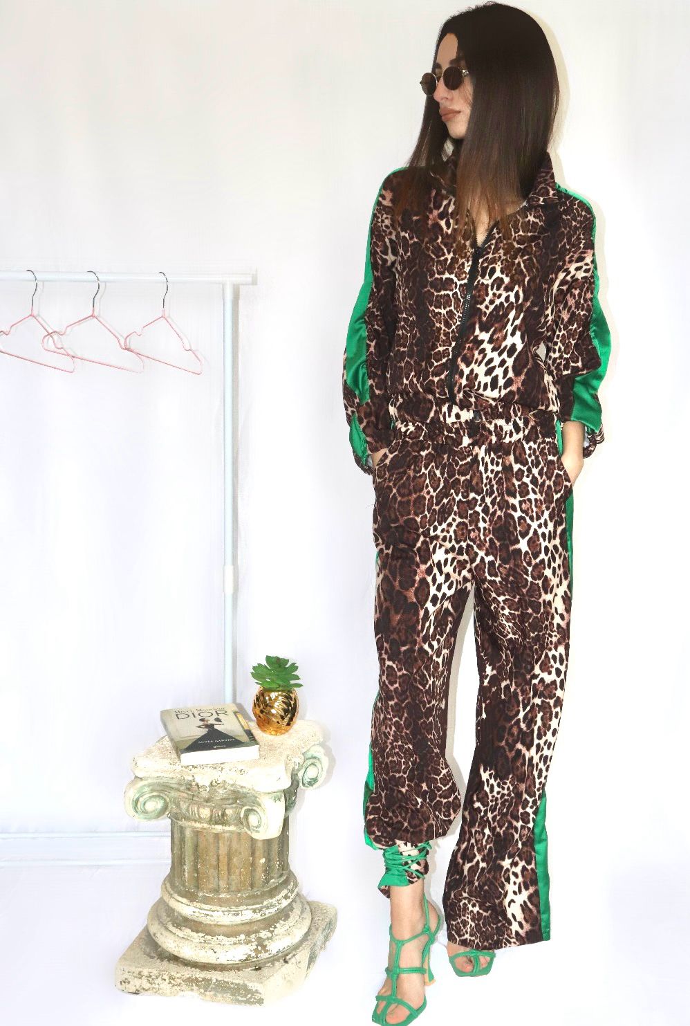 tuta due pezzi in colorazione leopardata con dettaglio verde, TG. UNICA, veste da XXS ad XL