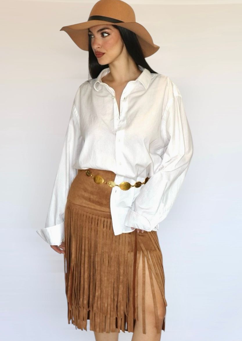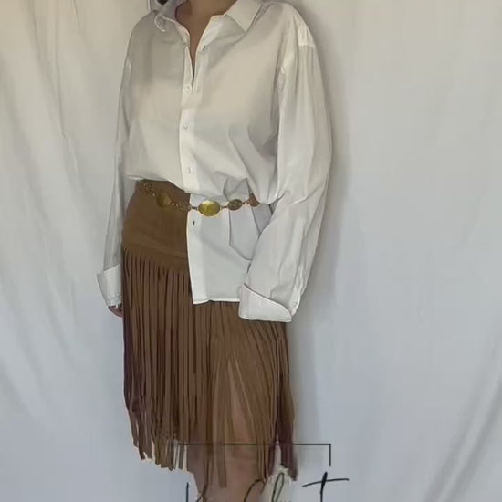 Gonna in velluto sfrangiata. chiusura con cerniera.