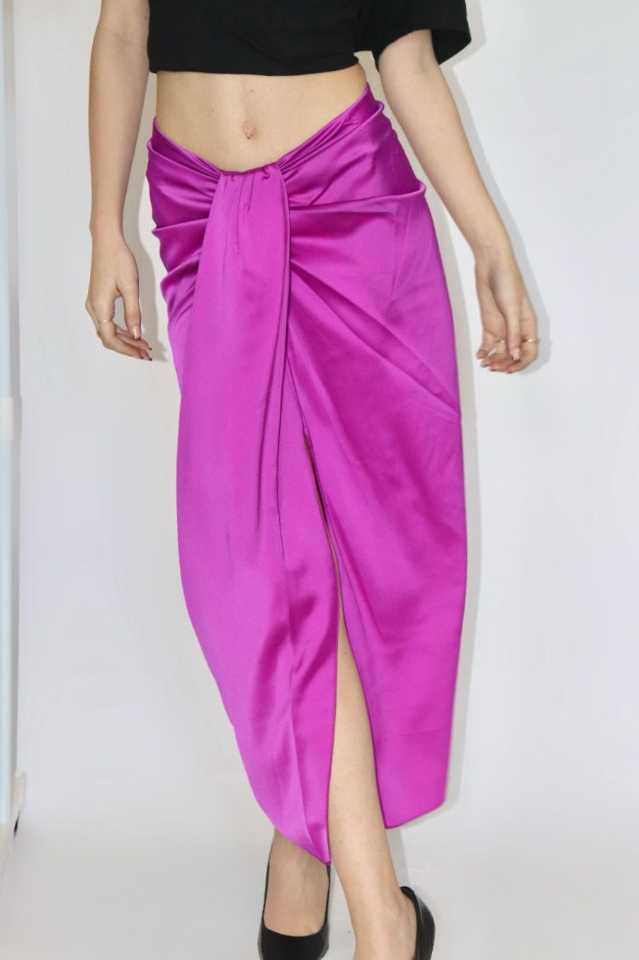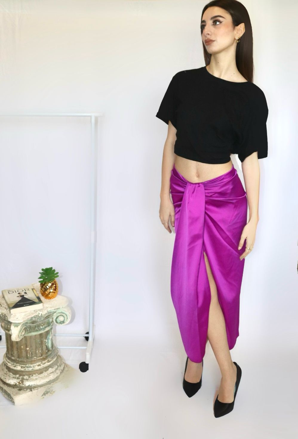 Gonna lunga con nodo sulla vita e lungo spacco. TG. UNICA da XS ad M.📌 Nota importante: Ogni abito che vedete indossato durante i nostri shooting viene adattato e modificato su misura per la modella che lo indossa. 💡