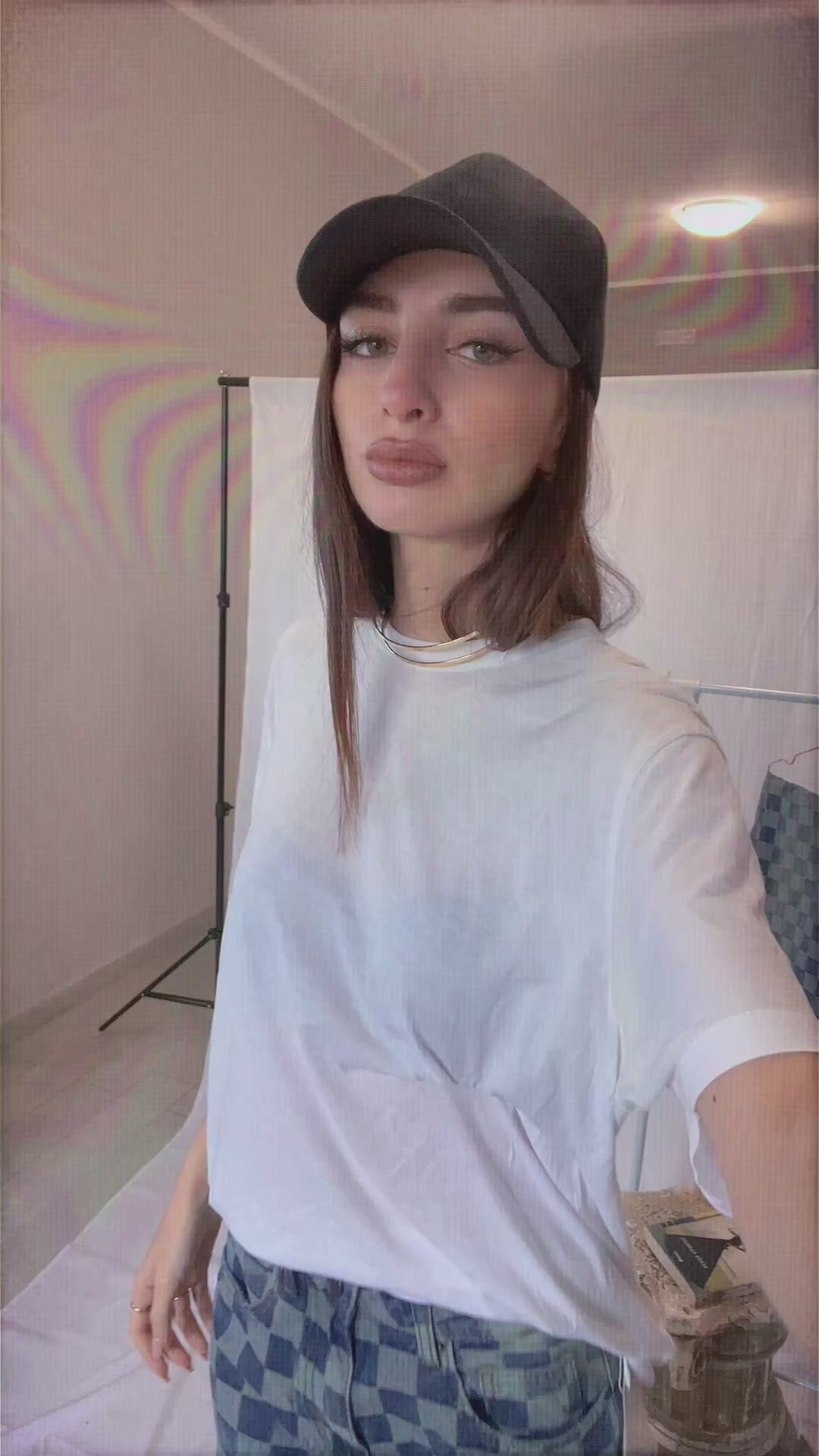 Jeans vita media con fantasia scaccata.