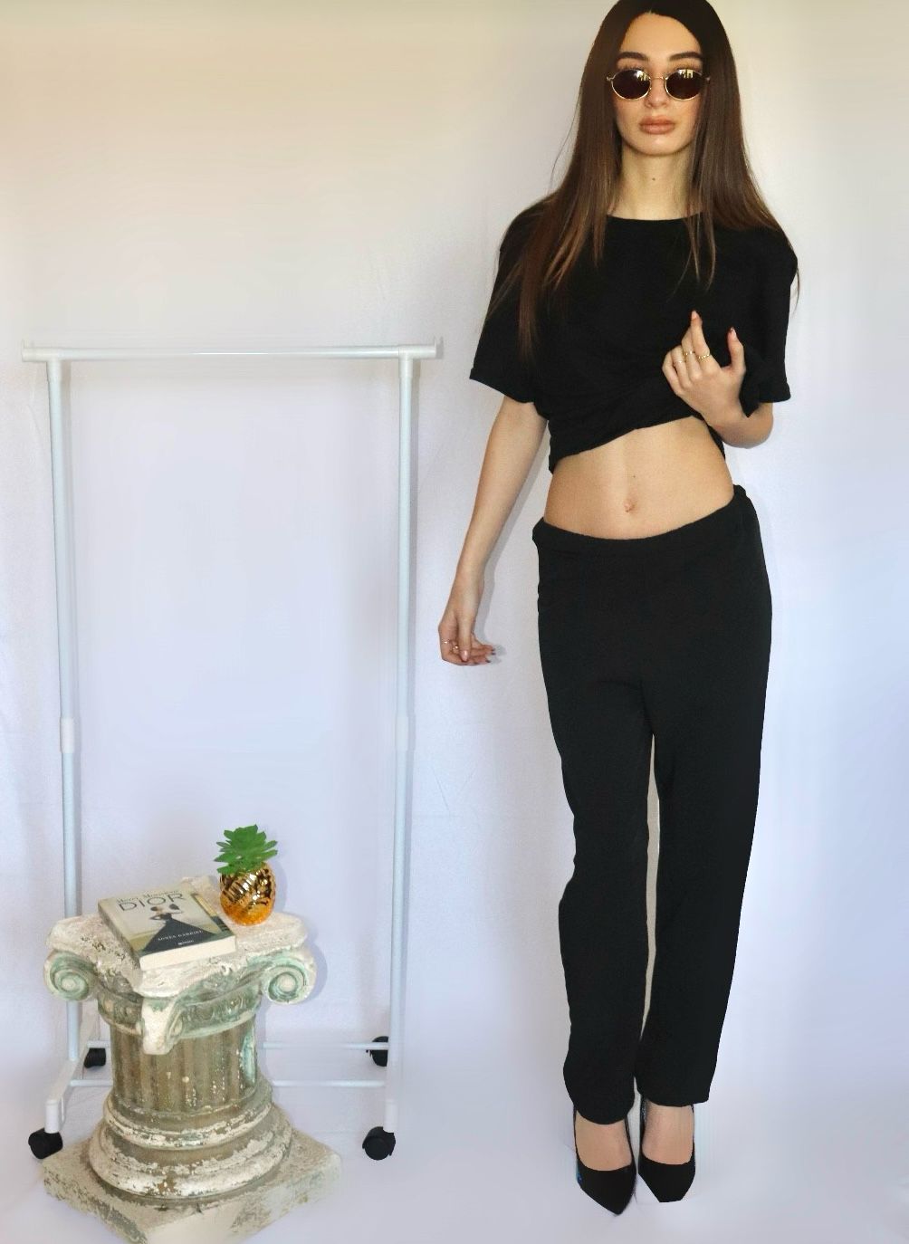 pantalone mood sigaretta. TG. UNICA da XS ad M.📌 Nota importante: Ogni abito che vedete indossato durante i nostri shooting viene adattato e modificato su misura per la modella che lo indossa. 💡