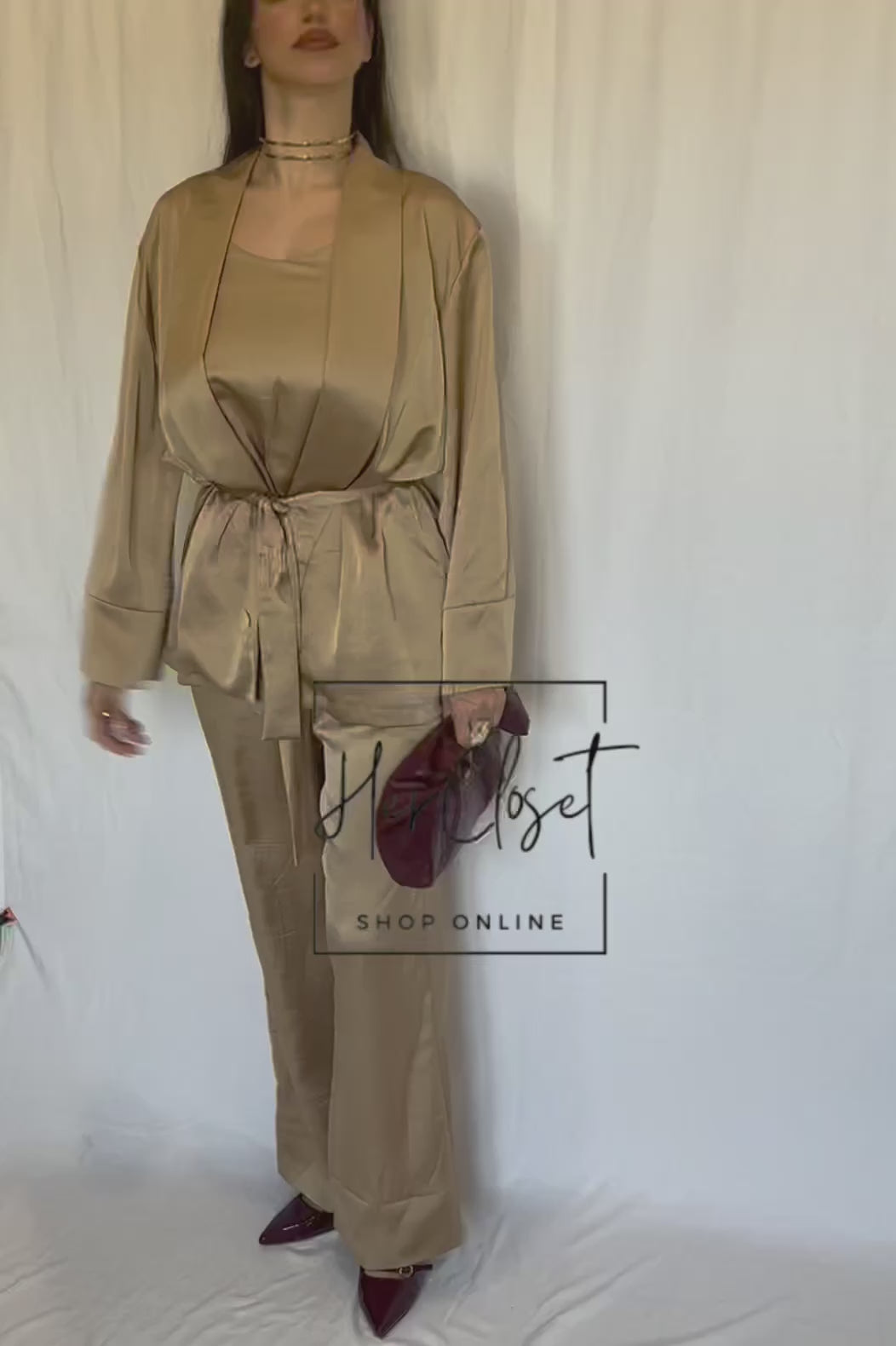 Cordset composto da tre pezzi: top elastico, pantalone elastico, giacca.